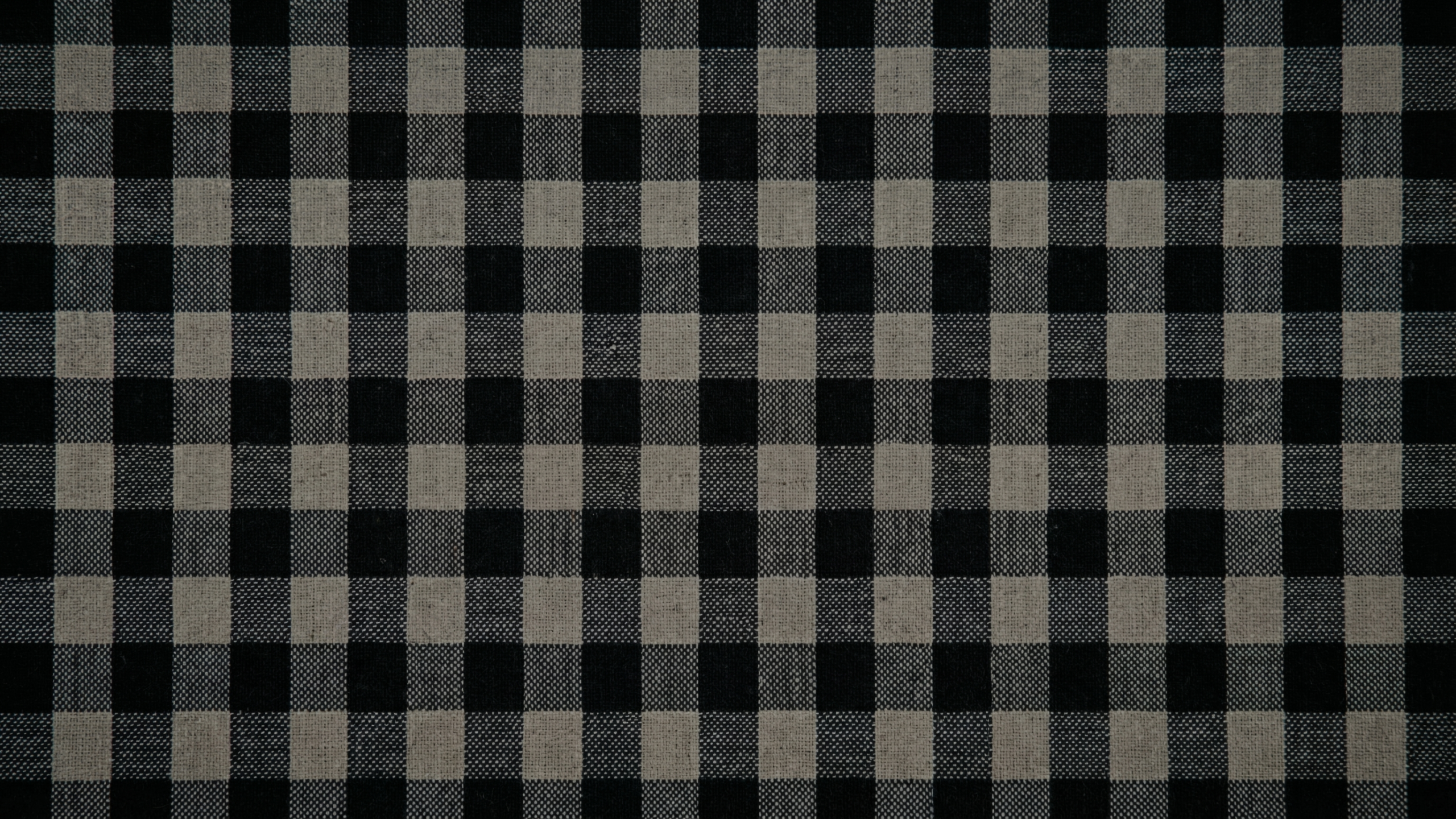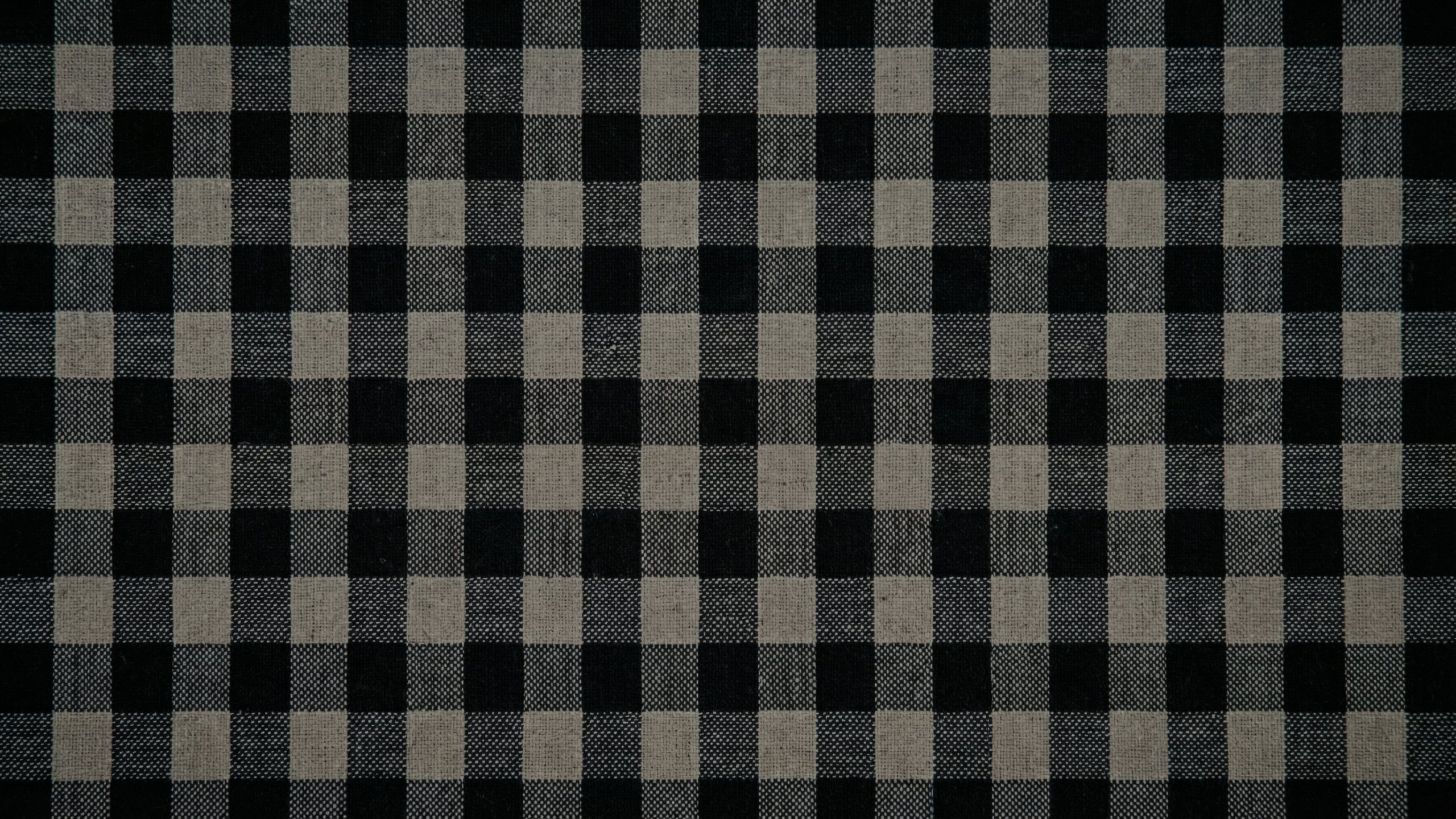 黒とオフホワイトのコントラストが特徴的なギンガムチェック柄のPC壁紙です。
