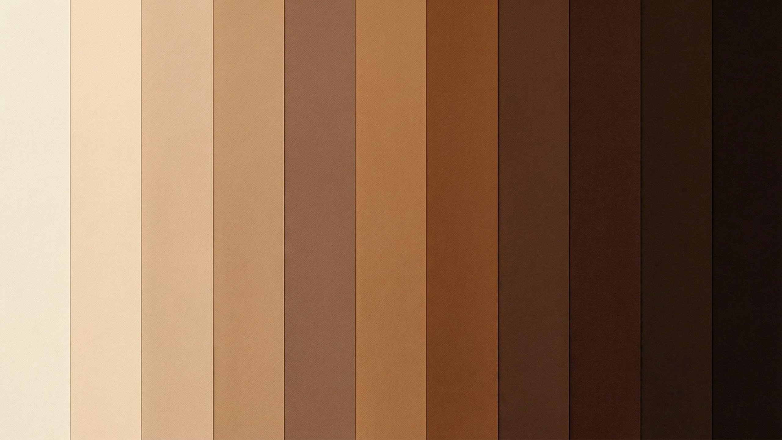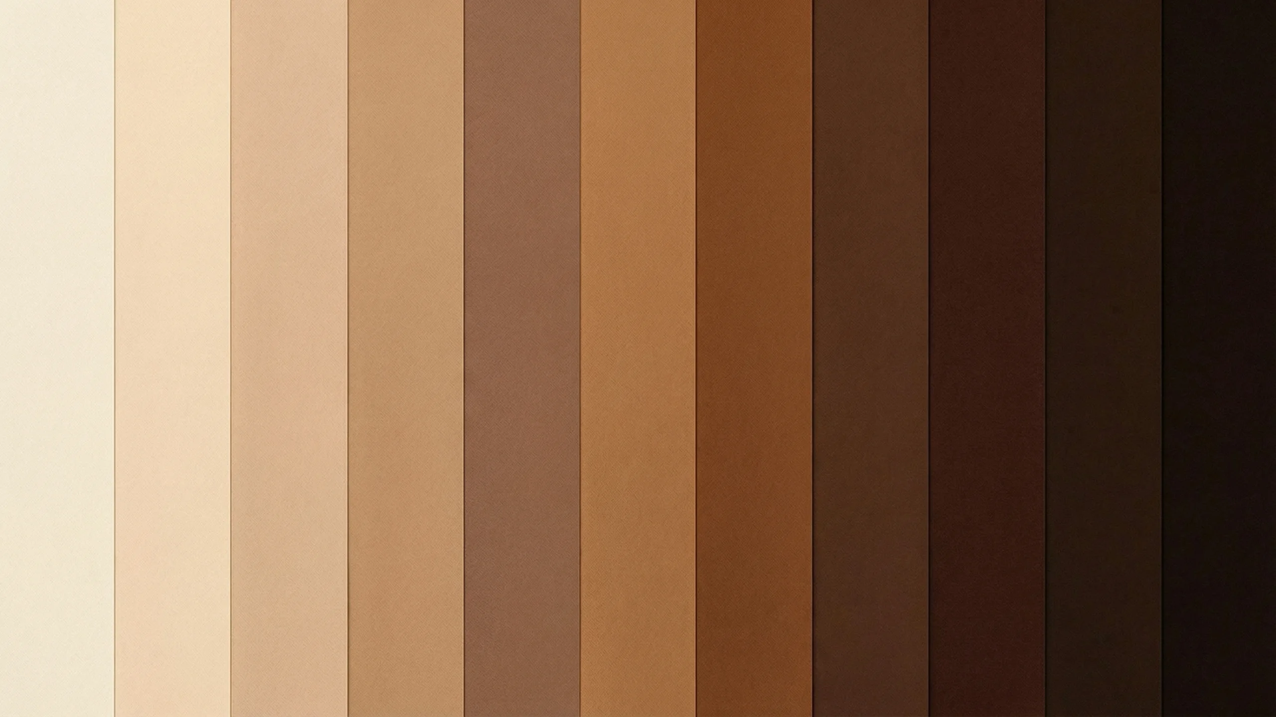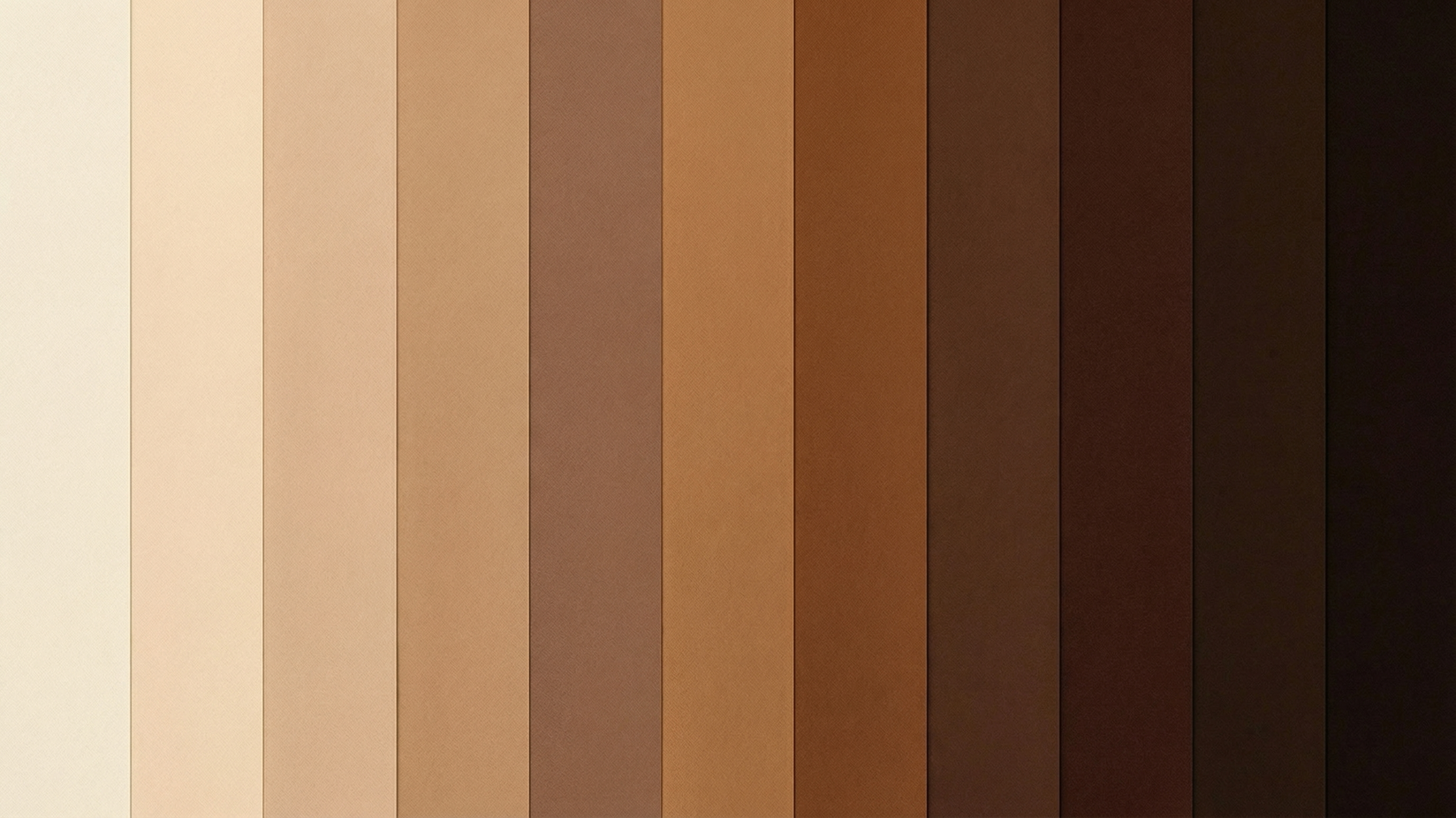 ベージュ・タン・キャメル・チョコレートなど温かみのある茶色のトーンが左から右へとなめらかに移行し、ナチュラルでぬくもりのある雰囲気を演出します。