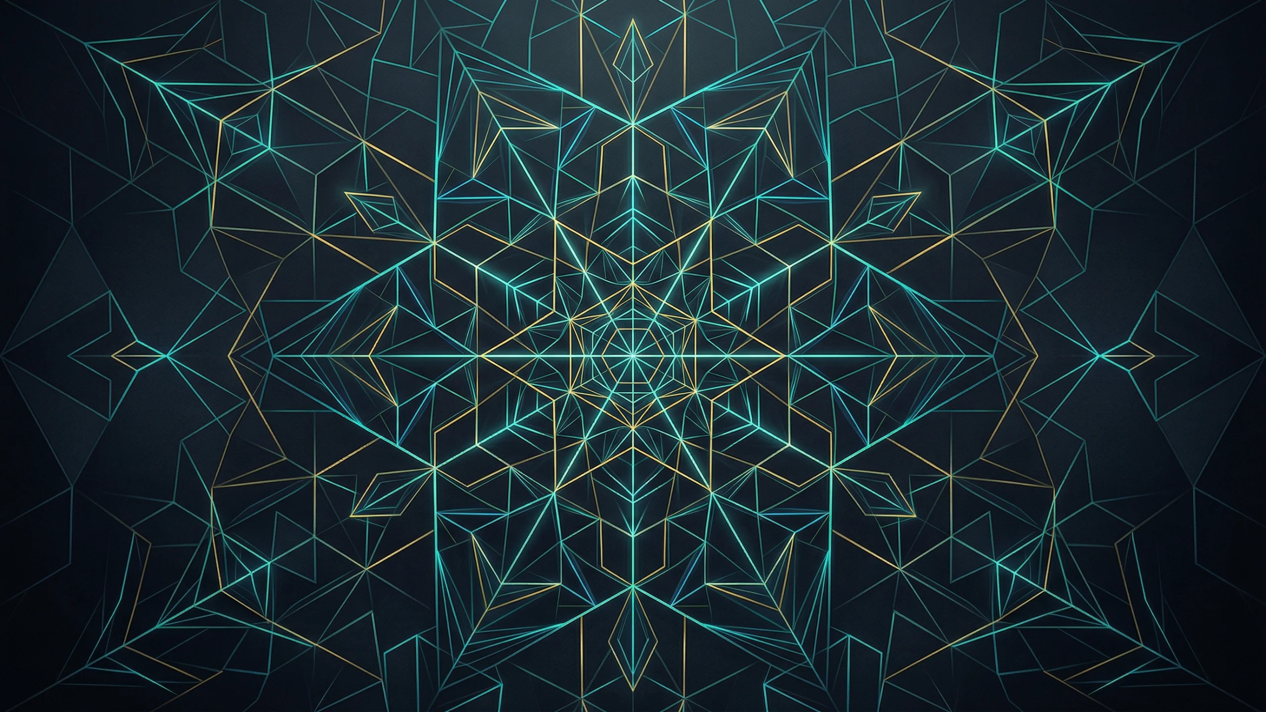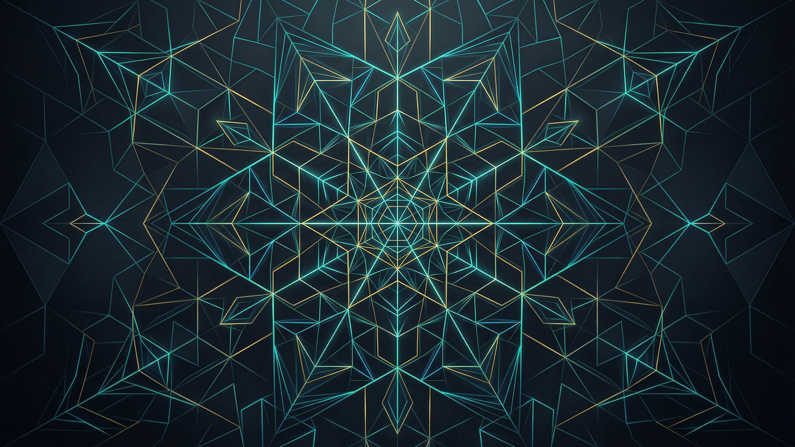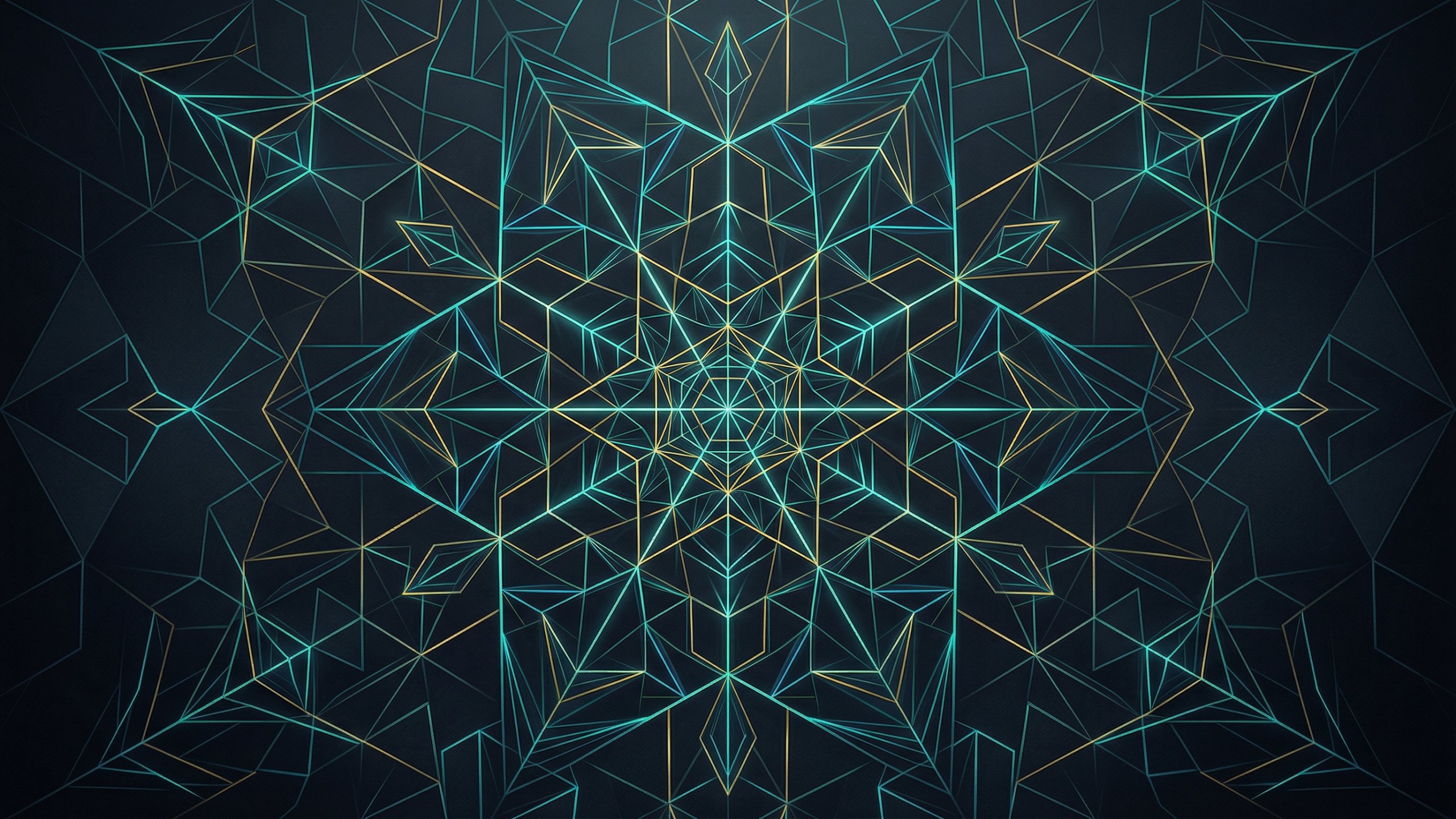 幾何学模様(ネオンライン、キューブ構造、ダークシンメトリー) PC壁紙 サンプルビュー