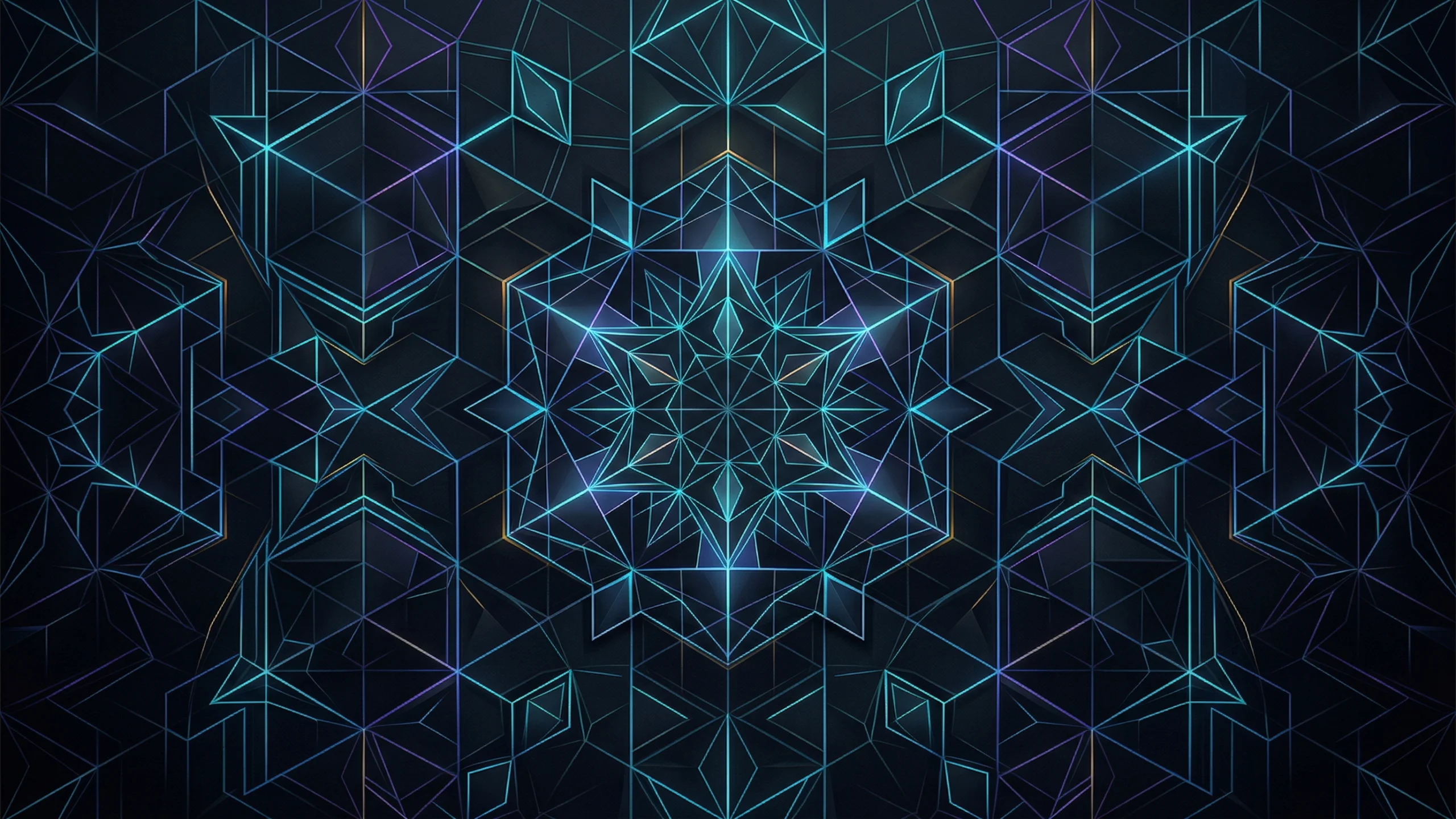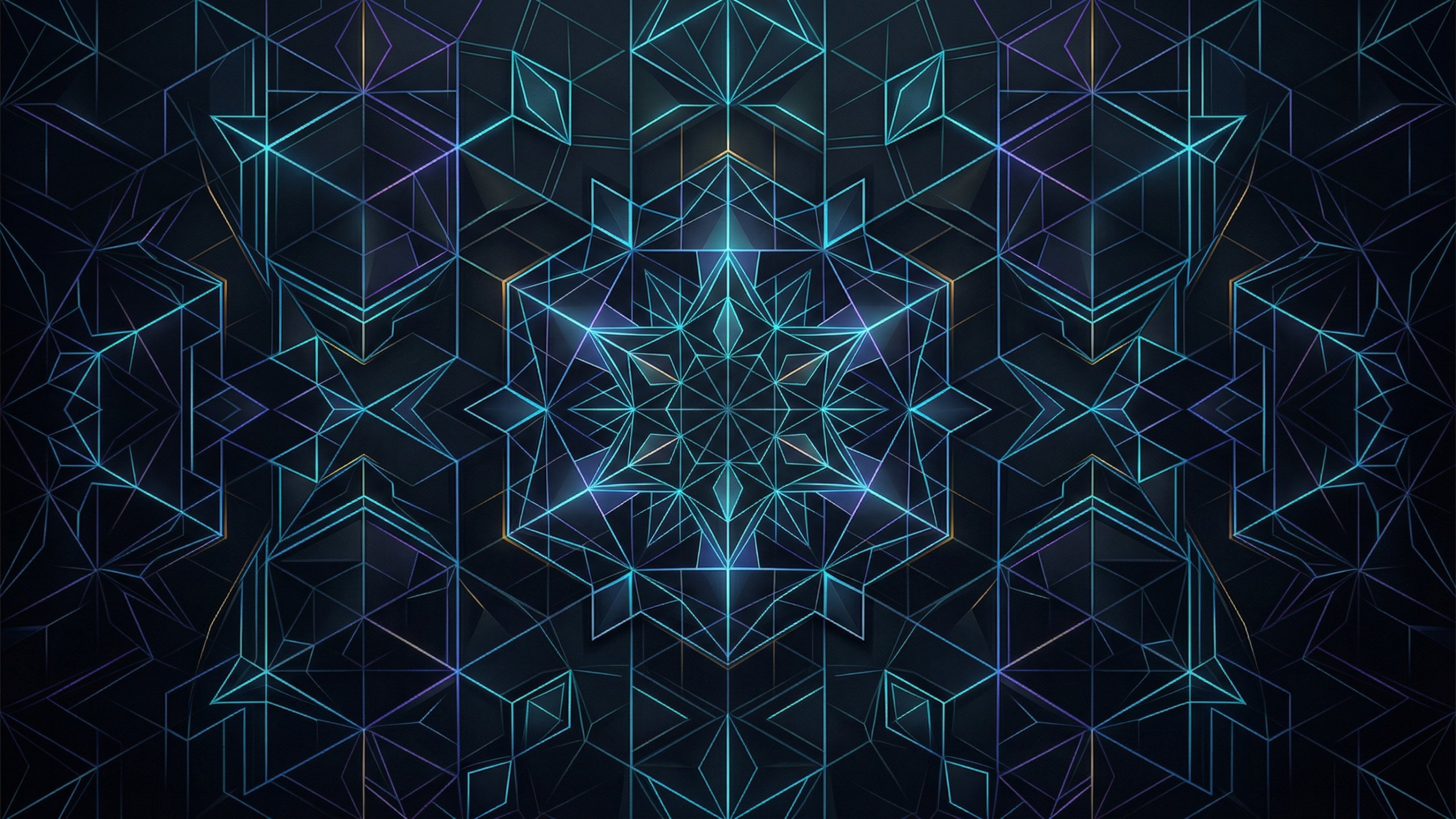 幾何学模様(ネオンライン、キューブ構造、星形シンメトリー) PC壁紙 サンプルビュー