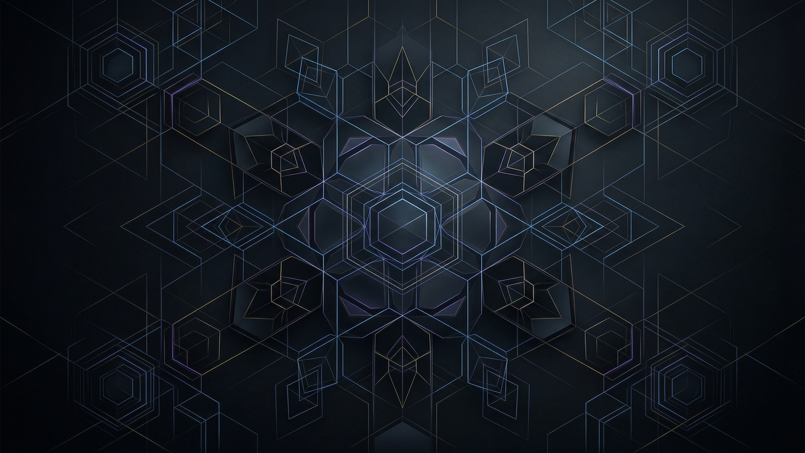 中心から広がるシンメトリー構造と多角形の連なりが、静かで洗練された印象を演出します。