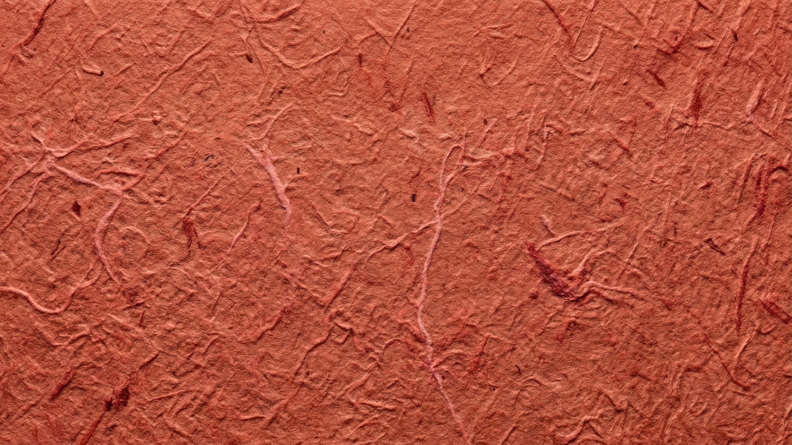 植物繊維の筋や細かな凹凸が全面に広がる、バーミリオンレッドの和紙テクスチャPC壁紙です。