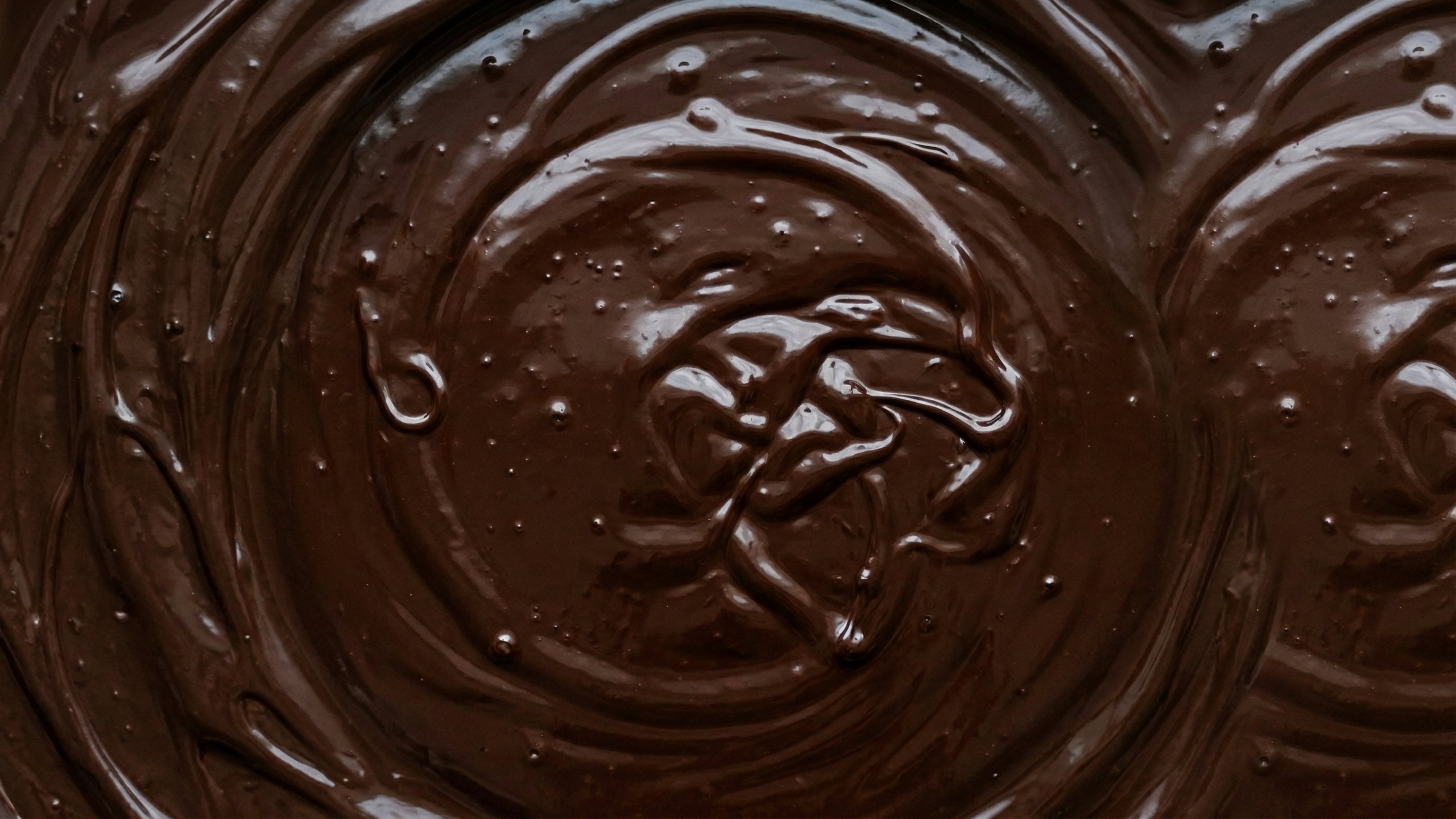 とろけたダークチョコレートが渦を巻くように広がるPC壁紙画像です。