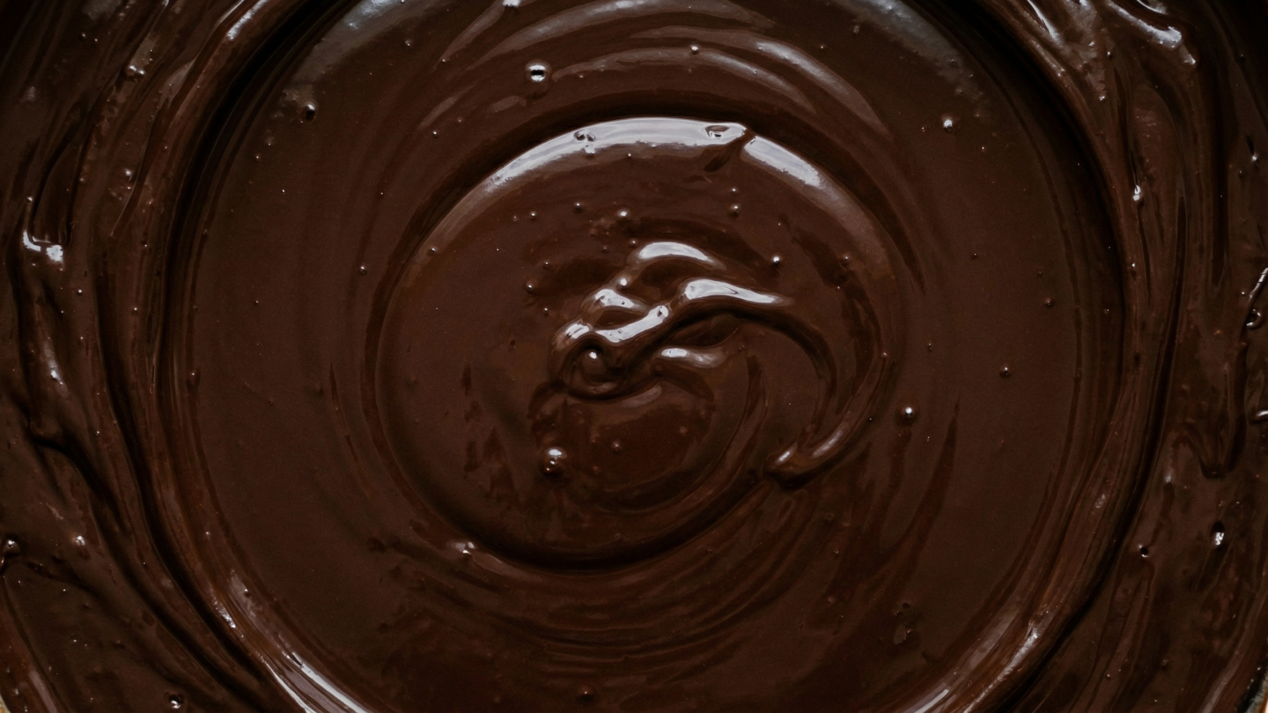 とろけたダークチョコレートが渦を巻くように広がるPC壁紙画像です。