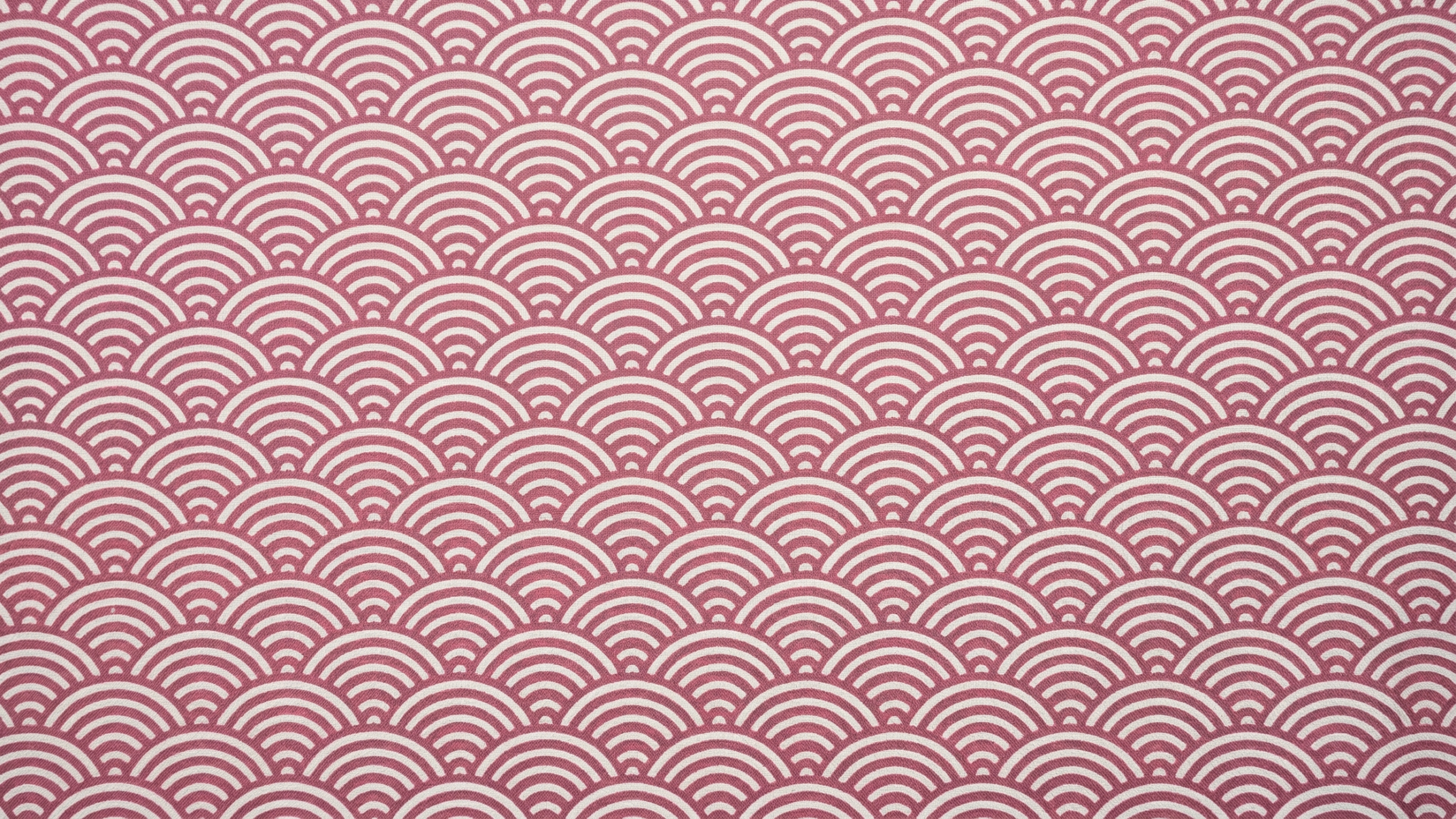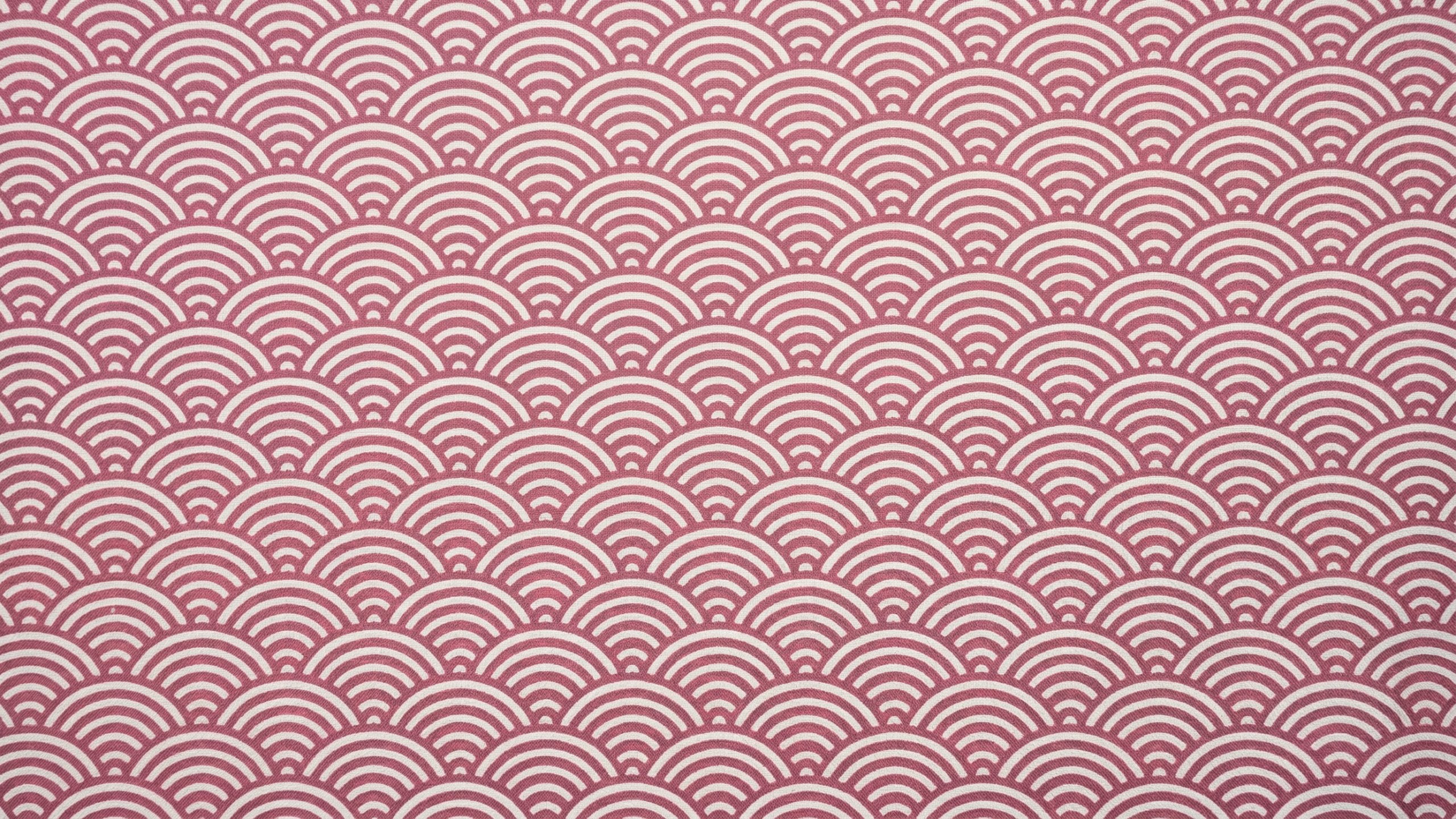 伝統的な日本の吉祥文様「青海波」をくすみピンクとオフホワイトで表現したPC壁紙画像です。